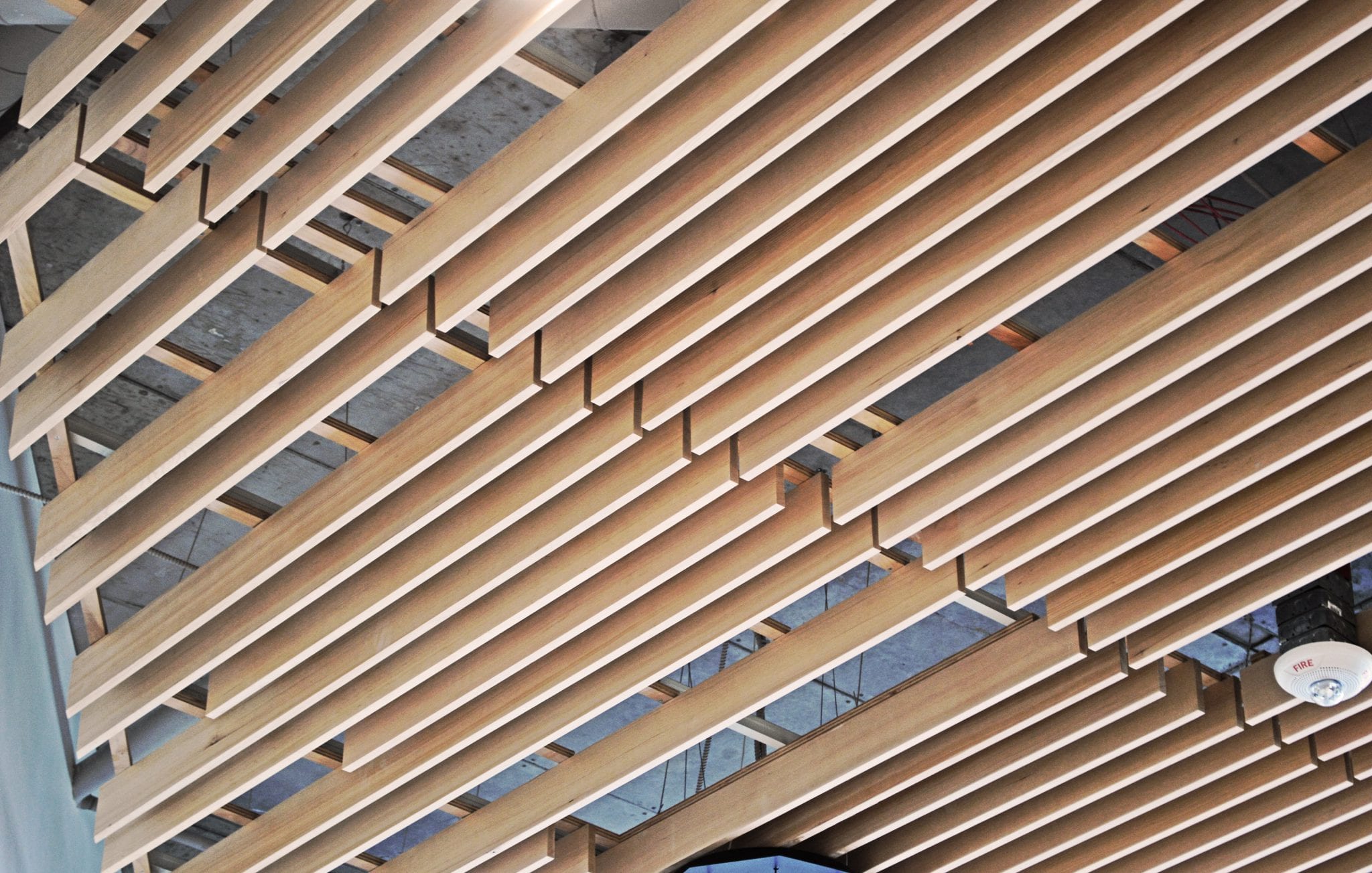 Solid Western Hemlock is primarily used in wood grilles and linear wood products, usually in interior environments. Hemlock is also suitable for exterior soffit applications. Ceiling tiles and specialty tile products almost always require veneers, so they do not typically use hemlock.