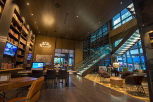 The 9Wood Kerf Reveal Linear style wood ceiling offers a design where the individual wood members abut with a kerfed edge-to-edge profile. Members are installed randomly to create a continuous look. Due to required fabrication tolerances for kerfed joinery, engineered veneered wood composites are used. Member lengths are 8′ to maximize yield of veneered sheet goods.
