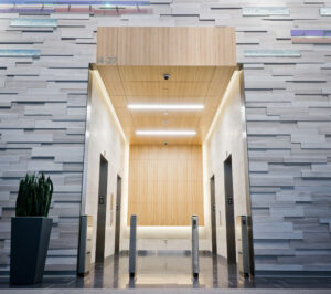 The 4900 Wall Tile wood wall system offers a tiled appearance. The 4900 Wall Tile mounts to the wall using factory-attached Monarch Clips and field-installed Monarch Rails. Standard 3/8″ reveals between panels create a clean panelized look.
