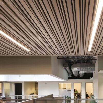 The Hybrid Panel offers designers unique textures and options for wood ceilings. With four Configurations, panels can be arranged for limitless variation and patterns. Individual wood members vary in both size and orientation. Panel width is 12”, with lengths ranging from 2′ to 12′ in 1′ increments. Hybrid Panels are custom fabricated prior to shipment and are laid out in the ceiling or wall according to your specified pattern. This product is a preferred design in areas that require seismic compliance. Best of all, the Hybrid Panels ship in 3-6 weeks with Custom made Fast.
